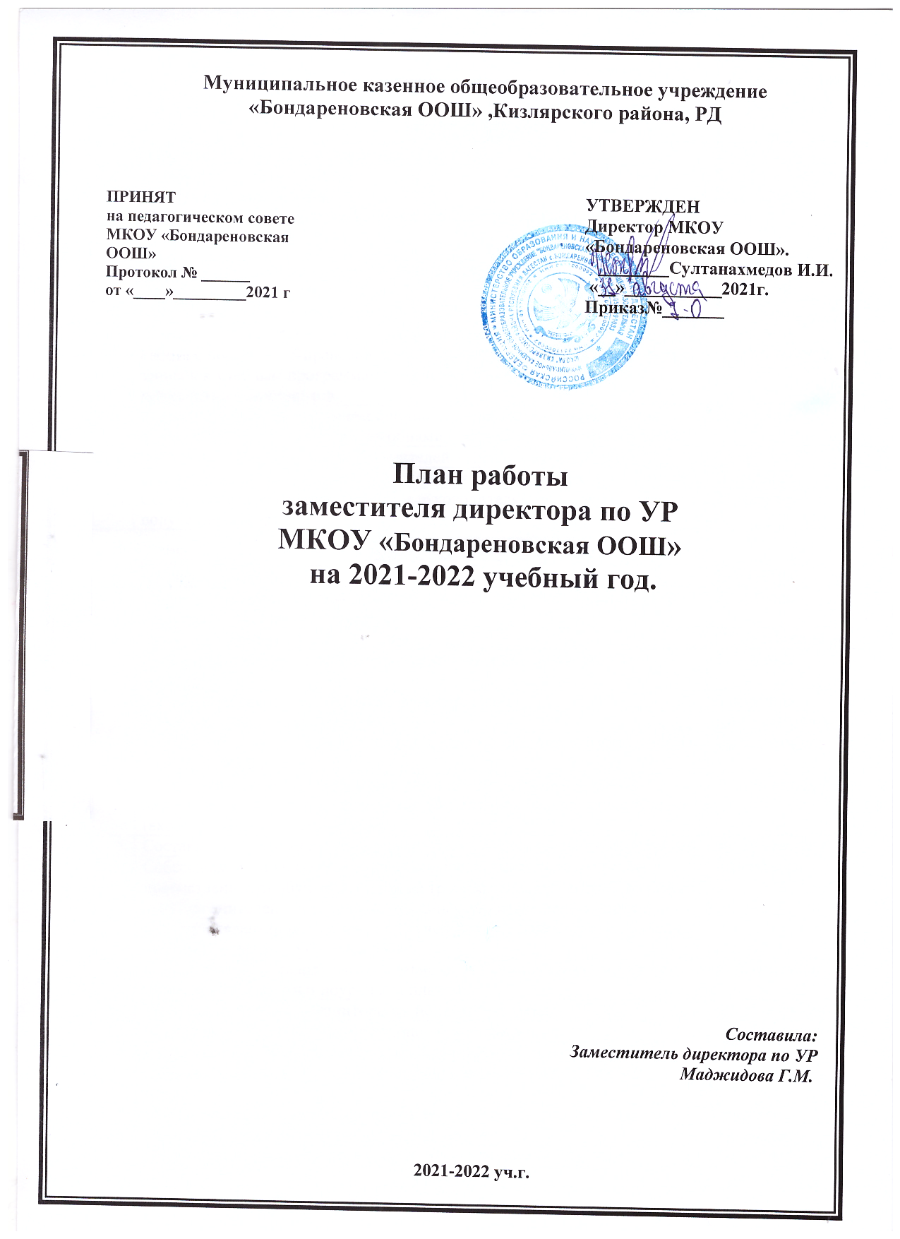 План работы замкстителя директора по УР МКОУ Бондареновская ООШ на 2021-2022 уч.год